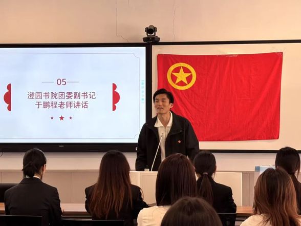 承团史荣光,启青春新航。2025年3月26日下午,澄园书院2024年度新发展团员入团仪式在澄园a105举行。澄园书院分团委副书记于鹏程老师出席,澄园书院2024年度新发展团员参加。本次仪式由澄园书院分团委学生副书记丁亚琦主持。