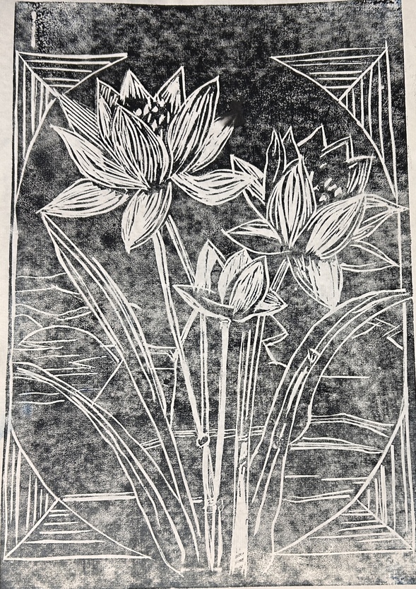 活动伊始,负责人以中外经典版画作品为引,系统讲解了版画的发展脉络与创作要领。通过对经典作品以及往届学生作品的赏析,同学们逐步了解了构图设计、刻板技法、油墨调配等核心技艺。区别于数字艺术的即时性,版画创作要求创作者在减与留之间精准把控,这种充满哲思的创作过程令参与者深受启发。